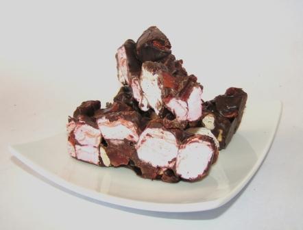Rocky Road is a type of dessert made up of milk chocolate and marshmallow which is usually served in individual portions